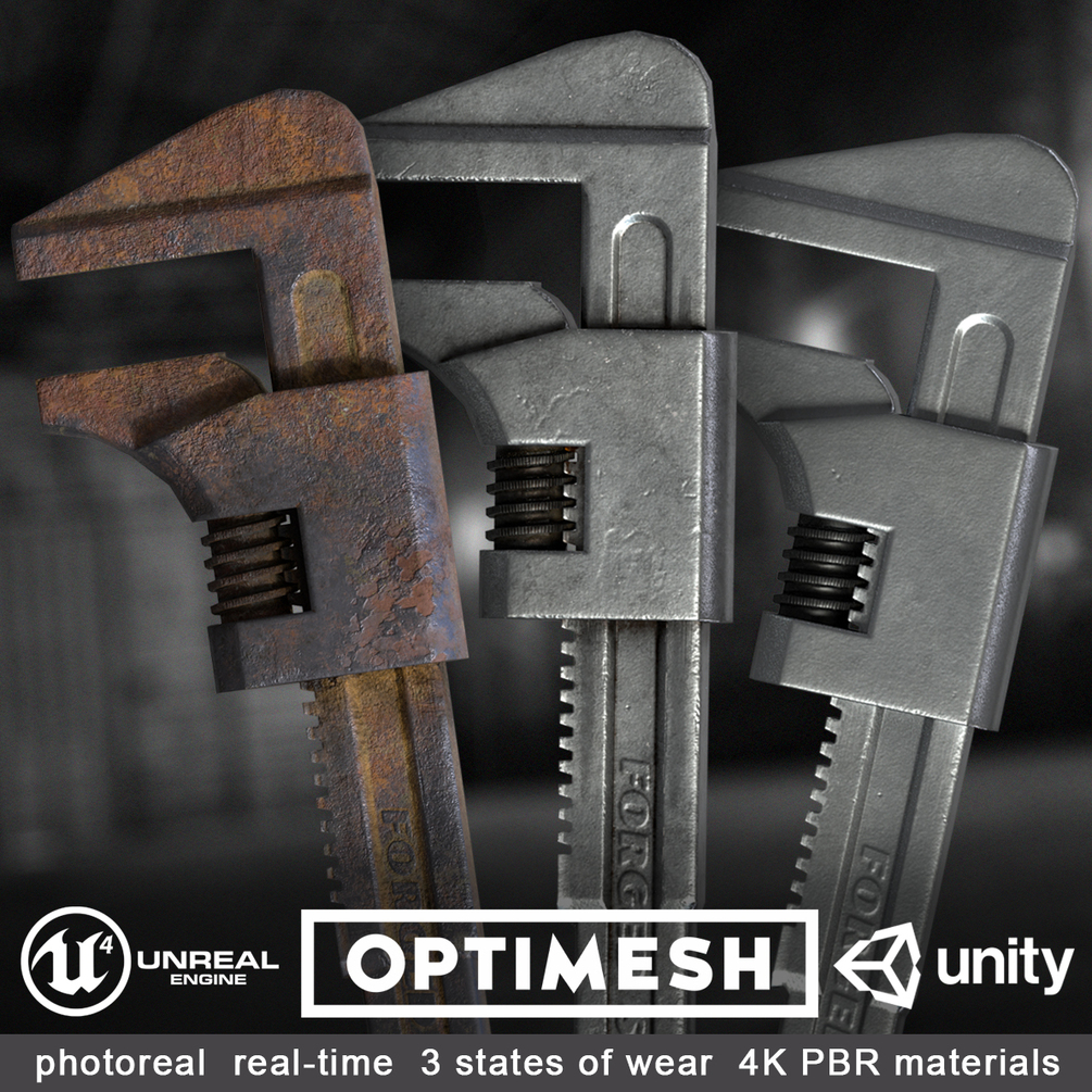 - 4K PBR textures for 3 states of wear (pristine, used, rusty)